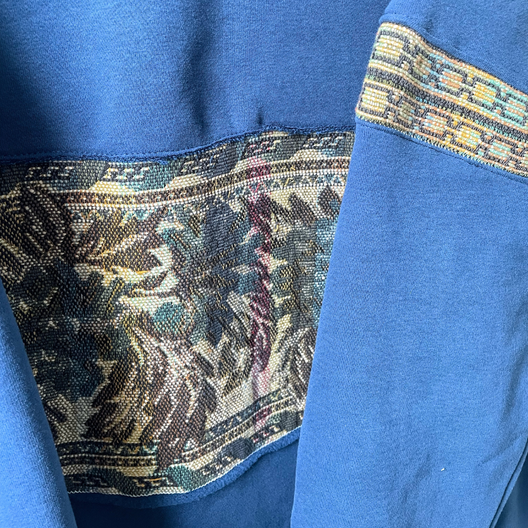 Floral tapestry stripe panel blue crewneck sweater - XXL